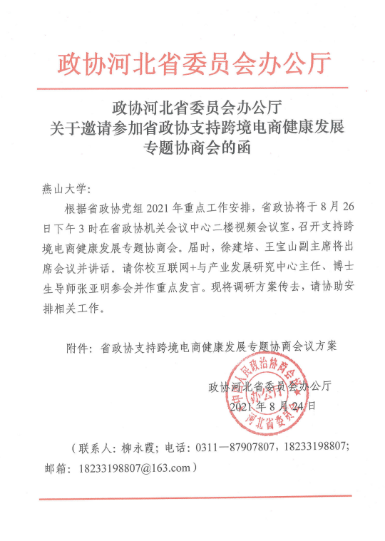 电子商务系张亚明教授受邀代表民建河北省委参加会议。