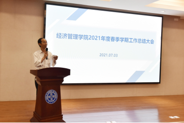 在经管楼A218会议室召开2021春季学期工作总结大会。大会由学院党委书记翁钢民主持,全院教职工参加了会议。