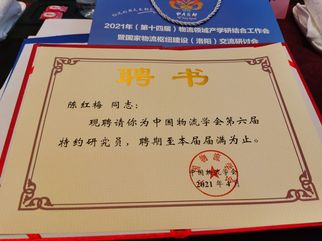 陈红梅教授当选为中国物流学会第六届特约研究员。会中就当前物流业产学研合作、物流业发展热点问题和参会专家进行了讨论交流与请教咨询。