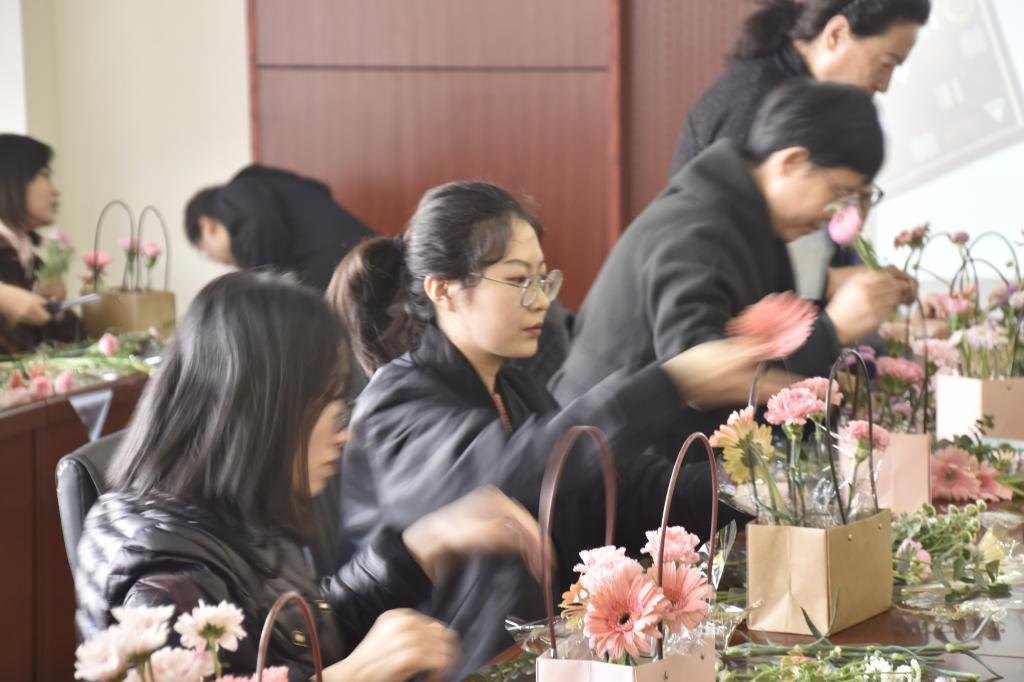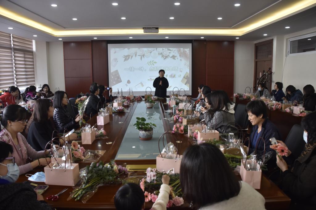 首先学院工会主席刘琳代表学院为女教职工送上节日祝福,随后开展了女神节插花讲座。