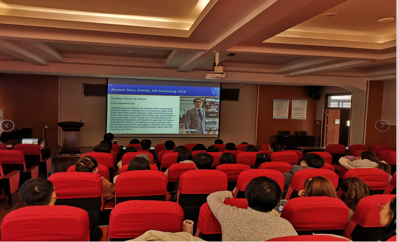 11月14日下午,国家留学基金管理委员会第十二届国际研究生奖学金信息说明会约翰霍普金斯大学商学院专场在经管楼A218会议室举行,本次专场说明会由Hitomi