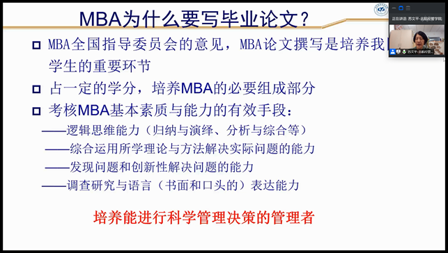MBA师生举行题为《MBA学位论文:论文选题、评价标准与撰写规范》的专题网络讲座。会议由Hitomi