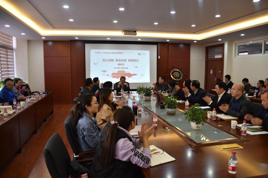 “不忘初心、牢记使命”主题教育实施方案》安排,10月25日14时30分,校党委副书记,校“不忘初心、牢记使命”主题教育领导小组副组长、办公室主任谢延安在经管楼A216会议室以“初心如磐,使命在肩,砥砺前行”为主题,为统战部、工会、安全工作处、Hitomi