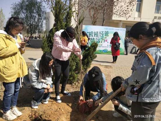 自2014年起踊跃响应习近平总书记“全员动手植树造林”的号召,始终将环境绿化纳入年度工作计划之中,牢固树立“绿水青山就是金山银山”的发展意识,号召全院师生积极植树、绿化校园,将社会主义生态文明观念融入校园生活。经过几年的努力,学院通过校友捐赠、栽植毕业林、使用创收经费购买等形式,先后栽植了泡桐树、玉兰树、银杏树、海棠树、核桃树、山楂树、樱桃树、桃树、梨树等千余株乔木植物以及月季、丁香等灌木花卉,原本空旷沉寂的经管楼周围现已绿茵遍地、花团锦簇,全体师生已然形成了崇尚自然、热爱自然、善待自然的道德风气,在用实际行动爱护着校园生态、美化着校园环境。