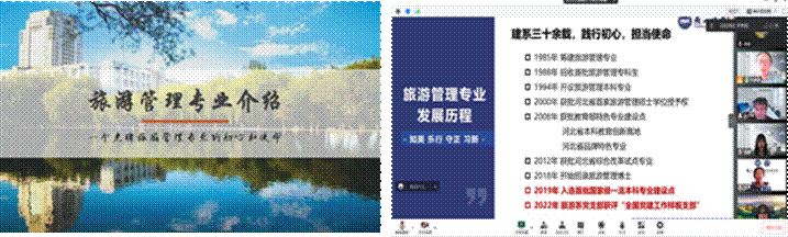 许老师从旅游管理专业的发展历程、师资力量、专业特色、人才培养、课程设置、课程思政建设等方面向全体参会教师做了详细介绍。