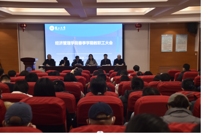 在经管楼A218报告厅召开2023年春季学期全体教职工大会,学院领导班子成员、全院教职工参加了会议。会议由院党委书记张振华主持。