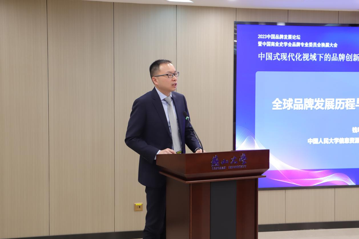 钱明辉教授作了题为《全球品牌发展历程与中国品牌价值观察》的报告,该报告从品牌现象与品牌社会、品牌社会与品牌经济、全球品牌经济的发展历程、中国品牌经济发展成效等部分,系统介绍了全球品牌发展历程以及中国品牌价值评价发展现状。