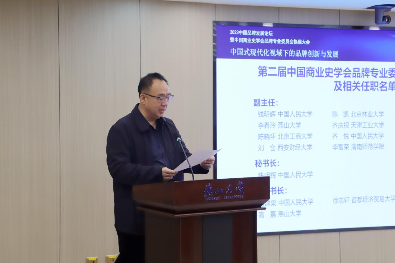 经管学院承办,充分展示了燕大经管学院的科研实力。郭教授希望新一届品牌专业委员会能够继续努力,立足中国品牌发展实际,搭建共享平台,深化推进相关领域专家的交流与合作,为中国式现代化贡献力量。最后,郭国庆教授宣布新一届专委会成员构成情况及相关任职名单。