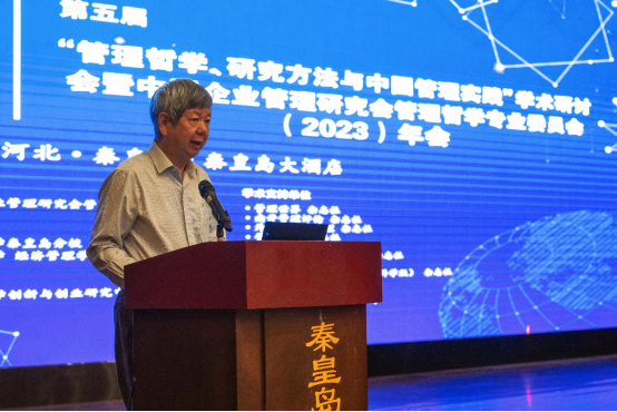 在名家演讲阶段,东南大学的王宁教授、南开大学的王迎军教授、中山大学的肖静华教授、东南大学的杜运周教授和东北大学的孙新波教授分别作了题为“通用知识还是本土知识:社会科学本土化争议的方法论把脉”、“我对企业家知识论的疑思”、“实践体察、理论探索与思想传播:案例研究的思与行”、“哲学如何促进管理理论方法原创研究”、“中国制造企业数字化转型: 探索与思考”的精彩报告。报告内容引经据典、融通古今、精彩纷呈。名家演讲环节分别由东北大学的贾建锋教授、东北大学秦皇岛分校的李刚教授和杨勇教授主持。