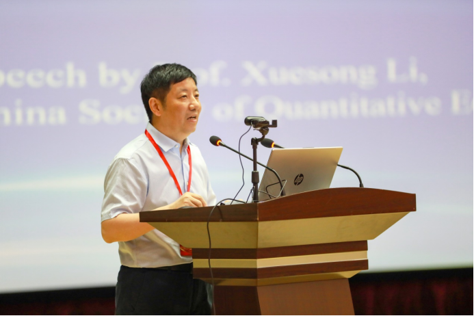 李雪松代表中国数量经济学会对本次会议的举办表示祝贺,介绍了中国社会科学院数量经济与技术经济研究所在数量经济领域为加快构建中国特色哲学社会科学学科体系、学术体系、话语体系所做的工作。
