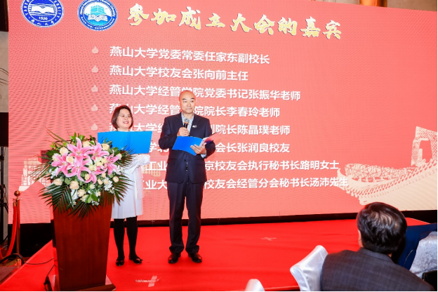随后,举行受聘及授旗仪式,校、院领导分别为经管学院北京校友会名誉会长、会长、副会长、理事以及资深校友颁发聘书。