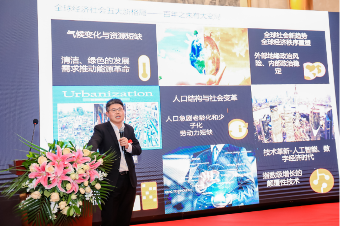 1996级旅游管理专业校友、著名经济学家花长春作主题为《后疫情时代中国经济大机遇》的分享。他针对新形势下的中国经济机遇与挑战进行了详尽阐释,强大的信息量吸引了在场人员的强烈关注。