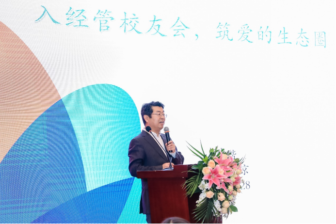 大会筹备组组长、1994级管理工程专业校友、华检医疗控股集团(HK:01931)销售总监孙锴向与会嘉宾汇报了校友联谊会筹备情况。他以“入经管校友会,筑爱的生态圈”为主题,深切阐释了经管学院北京校友会筹备的初衷及未来发展展望。