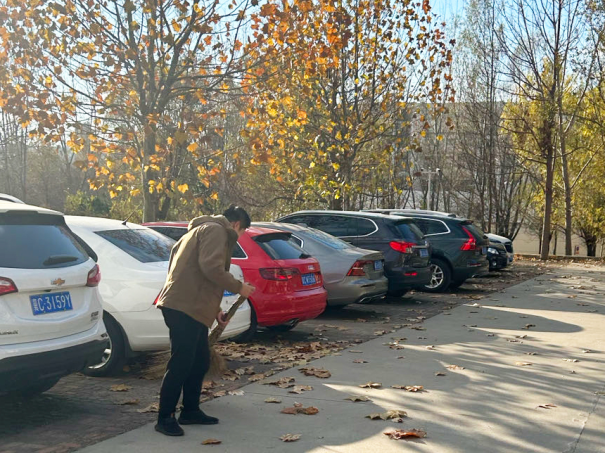 下午2点,参加活动的老师们在经管楼A区停车场集合,拿着扫把、耙子、垃圾袋等工具,齐心协力清扫经管楼周边各个角落,对绿化带等卫生死角进行了重点清理。尽管天气很冷,但大家依然精神饱满、干劲十足。劳动过程中,老师们不怕脏、不怕累,戴着手套,提着垃圾袋,仔细清理着草丛、路边散落的各种杂物,齐心协力将落叶集中收拢到编织袋里。活动还吸引了附近路过的热心学生,他们纷纷加入了此次环境清洁活动中。