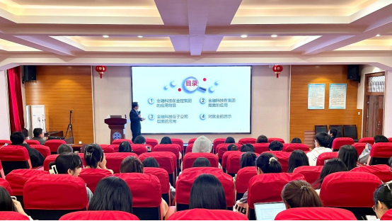 师生深入浅出地讲解了金融科技在金控集团和子公司层面的应用以及对就业的启示等。讲座由正处级专职辅导员杨小丽主持。
