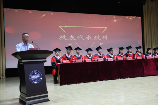 张玉强代表校友致辞。他结合自己的经历,分享了成功的经验和感悟,鼓励毕业生们要坚定信念,勇于追求梦想,不断努力创新。