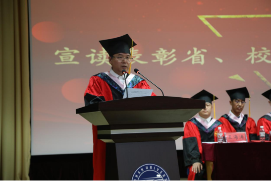 典礼在庄严的国歌奏唱声中开幕。靖鲲鹏宣读了2024届本科生毕业决定和2024届本科生学位授予决议,张振华宣读了表彰河北省普通高校2024届优秀毕业生和Hitomi