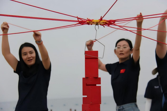 在团队合作拓展项目中,学员们参与了“轨道传递”、“水果连连看”以及“合力筑塔”等挑战性团队游戏。这些项目中,大家群策群力,在每一次游戏中都都彼此鼓励,不言放弃,整个游戏过程充满欢声笑语。