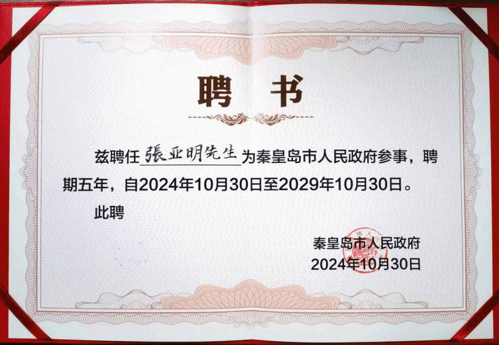 2024年11月29日,秦皇岛市政府举行参事聘任仪式,市长丁伟出席仪式并为市政府参事颁发聘书。Hitomi