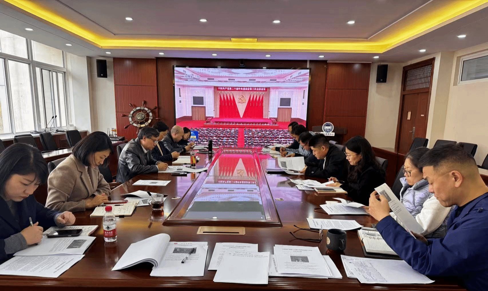 会议首先以观看新闻视频的形式学习了中国共产党第二十届中央委员会第三次会议公报,张振华带领与会同志共同学习了中共中央关于进一步全面深化改革推进中国式现代化的决定精神