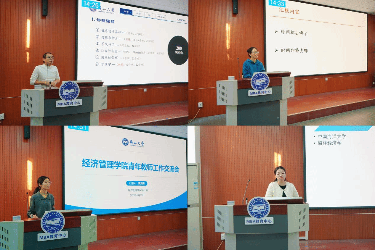 闭幕式阶段,学院工商管理学部主任张敬伟教授、管理科学与工程学部主任李世勇教授、学院学术委员会委员代表王晓丽教授以及陈晶璞副院长,也毫无保留地分享了自己过往的成长经历和宝贵经验,并对青年教师的发展提出指导。具体涉及:校内外多交流与合作;教学与科研相辅相成;国内国外发表均衡;科研数量向质量转换;研究方向顺利过渡;育人与个人发展并重等。