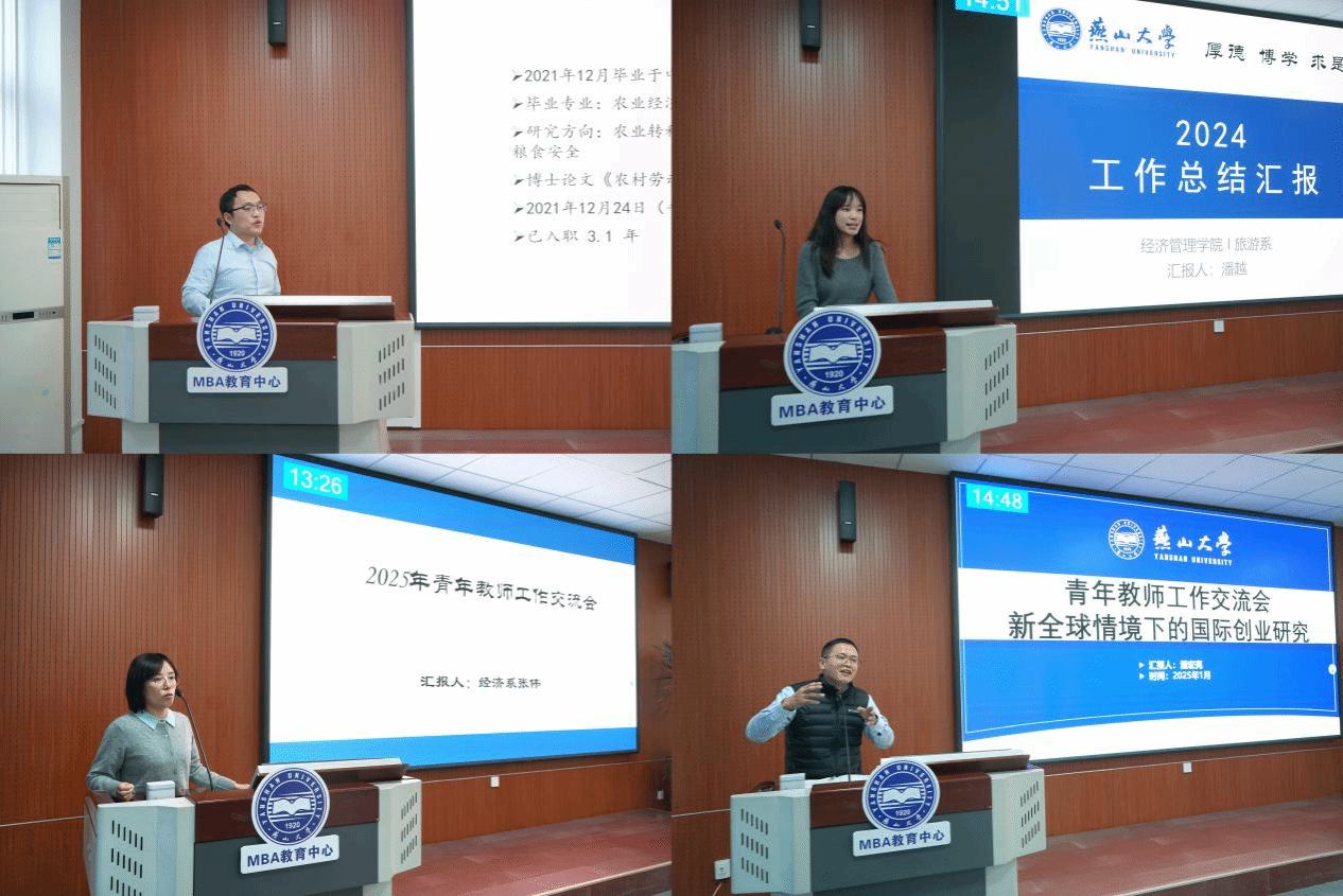 具体交流环节分为6个阶段进行,为时一天半,32位青年教师围绕教学、科研、育人和公共服务等方面,就入职以来的主要工作和业绩进行了汇报交流,并详细阐述自己的研究领域和主要研究成果。汇报内容充实、落地,交流过程高效热烈。教师们的思想、观点和经验在摩擦与碰撞中不断激发出新想法、新见解和新思路。会场气氛浓厚、热烈,彼此间互相学习,互相借鉴,互相促进,老师们纷纷表示受益匪浅。