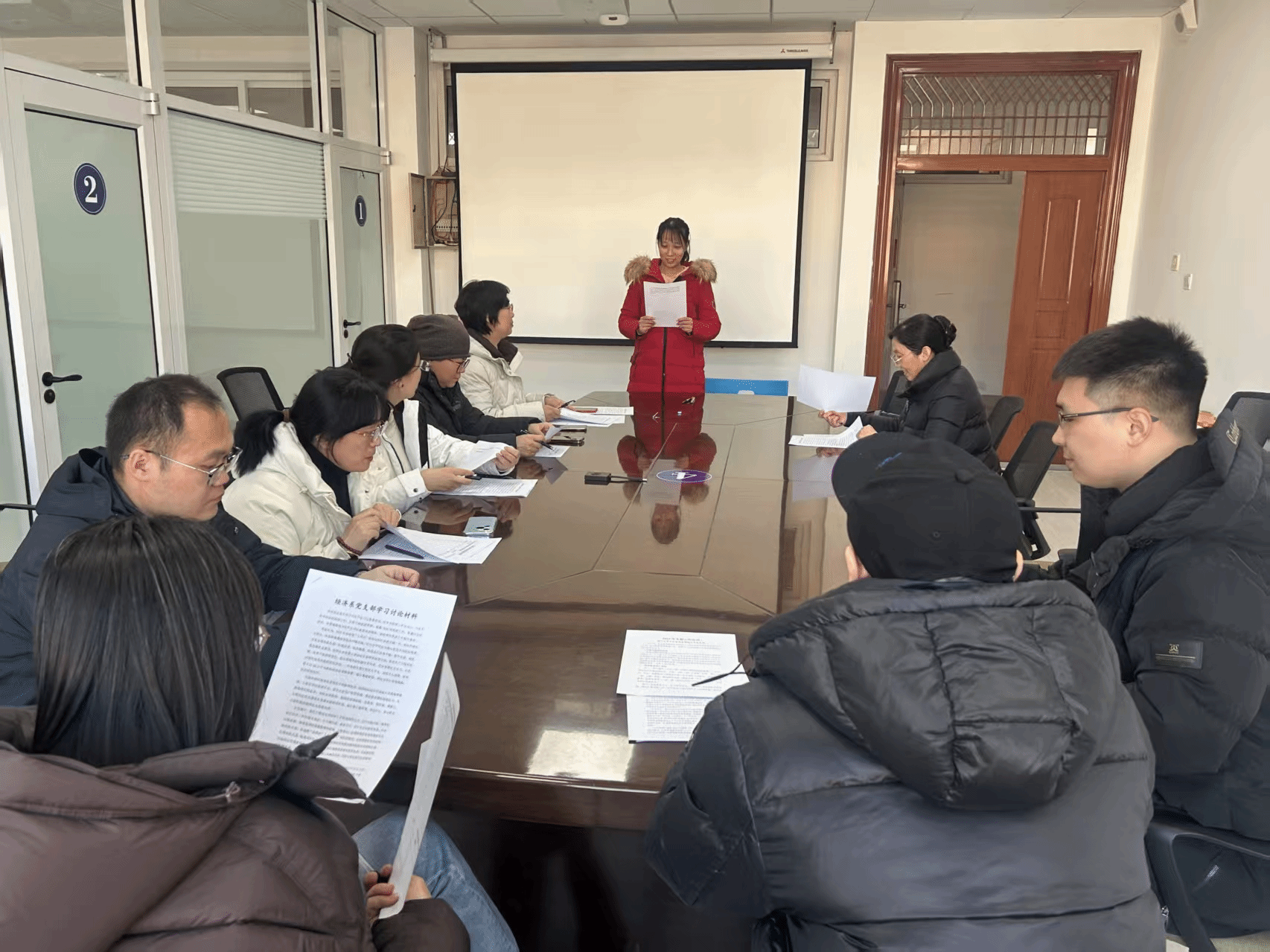 经济系党支部于2025年2月21日召开组织生活并开展民主评议党员。会上,党员们听取了党支部书记徐蕾做的支部2024年工作报告;围绕党的政治理论学习、支部建设以及加强党员教育管理等方面,共同查摆支部存在的问题;开展谈心谈话、批评与自我批评;并采取无记名投票的形式完成了民主评议党员工作。支部委员会向大家保证,针对查摆出的问题,会明确具体措施、整改时限与责任分工,做到有对策、见成效,将整改任务落到实处。