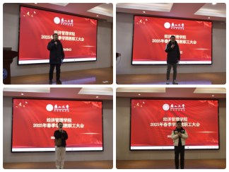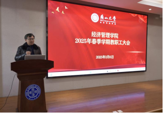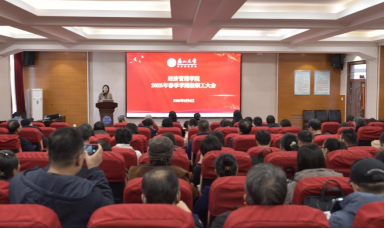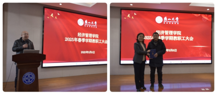 在经管楼A218报告厅召开2025年春季学期全体教职工大会,学院领导班子成员、全院教职工参加了会议。会议由学院正处级专职辅导员杨小丽主持。