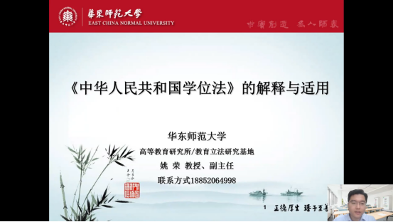 活动开始,王玉坤老师简要介绍了《学位法》出台的背景和重要意义,强调了其在规范学位授予、保障学位质量等方面的关键作用。随后,与会老师共同观看了华东师范大学姚荣教授以“《中华人民共和国学位法》的解释与适用”为题的专题视频讲座。姚荣教授剖析了《学位法》的生成逻辑,解读了《学位法》的规范释义,以部分高校为例讲解学位授予单位的制度建设经验。现场教师们认真聆听,不时记录内容要点。