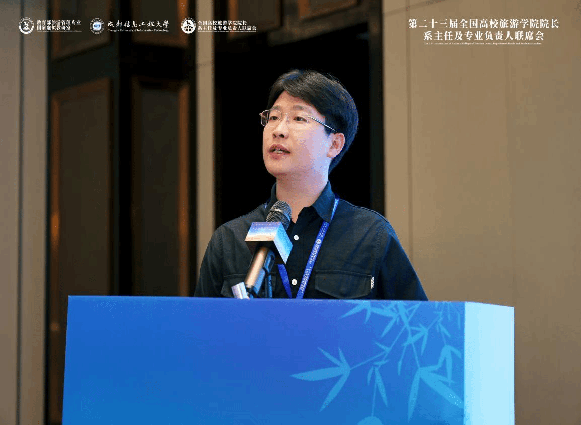 会议围绕“全方位创新助推旅游教育强国建设”主题展开深度研讨,旨在推动旅游管理类专业人才培养体系革新。高磊专题发言的题目为《AI时代高等院校旅游人才培养方案设计思考》,发言聚焦AI技术革命对旅游业的深度影响,提出高校人才培养需构建“技术赋能+行业需求”双驱动模式。强调课程体系应融入人工智能、大数据分析等数字技能模块,强化智慧旅游系统设计、沉浸式体验开发等实践能力。着力培养具备数据思维、跨界创新能力和伦理素养的复合型人才,推动旅游教育从传统服务型向智能管理型升级,助力行业数字化转型与可持续发展。