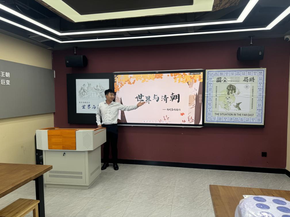 在交流环节,双方就彼此的发展历史、业务优势和资源结构等进行了介绍,围绕研学教育、主题景区、数字文旅、学生就业实践等项目合作问题交换了意见,达成多项共识,并对我系毕业生在横店影视城的就业表现情况进行了调研,旅游管理专业2024届硕士毕业生张赛超现场展示了其独立研发的版权研学课程与市场化文创产品。