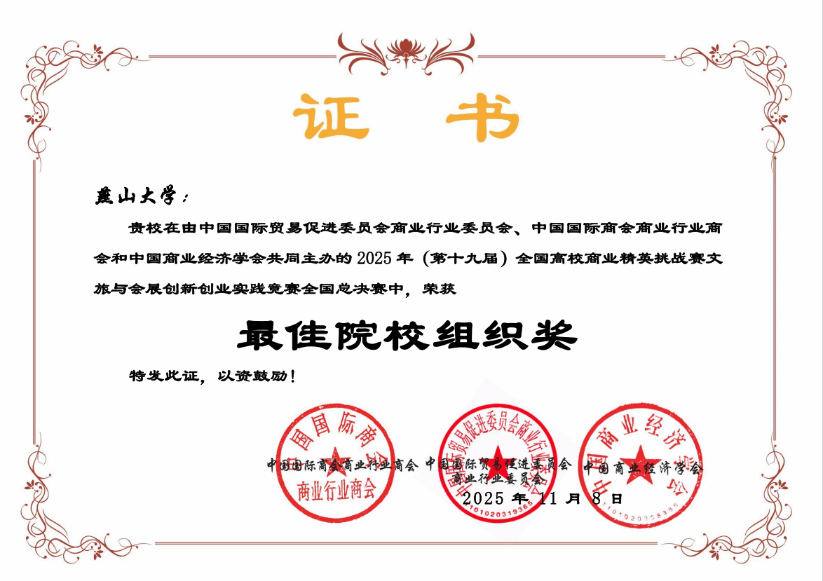 本届大赛由中国国际贸易促进委员会商业行业委员会、中国国际商会商业行业商会与中国商业经济学会联合主办,是目前商科教育领域文旅与会展方向唯一纳入该榜单的国家级赛事。大赛自今年3月启动以来历时8个月,共吸引了全国31个省、市、自治区、直辖市和特别行政区的800余所高校1.2万支队伍报名参加。