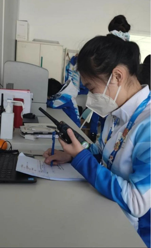 杨思琪作为场馆管理业务领域的一名通信中心助理,每天都要与对讲机“打交道”。她所在的岗位负责场馆各业务领域频道的实时监听和记录,发布各类通知以及沟通协调各业务领域的相关工作。通信中心助理(VCC)的工作要求志愿者在工作过程中要时刻保持精力高度集中,时刻做好信息记录工作和发布重要通知的准备,杨思琪始终严格要求自己,以饱满的精神状态和严谨的工作态度完成自己的志愿服务工作。