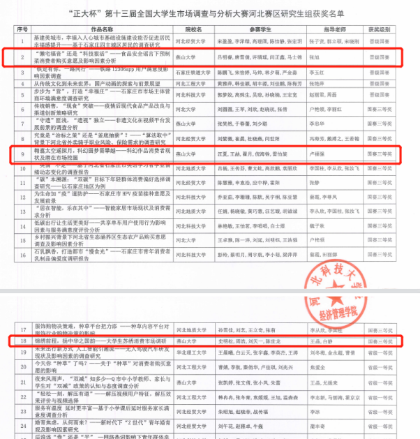 研究生参赛队伍最终取得国赛二等奖1项,三等奖2项的优异成绩。其中,由张旭老师指导,2021级管理科学与工程专业硕士研究生吕明睿、唐雪倩、许璘瑶、闫正鑫、马士锦同学的作品《“懒宅福 音”还是“科技狠活”——食品安全谣言下预制菜消费者购买意愿及影响因素分析》,入围全国研究生组总决赛,并获得二等奖。卢福强老师、王晶老师和白静老师指导的作品分别获得国赛三等奖。