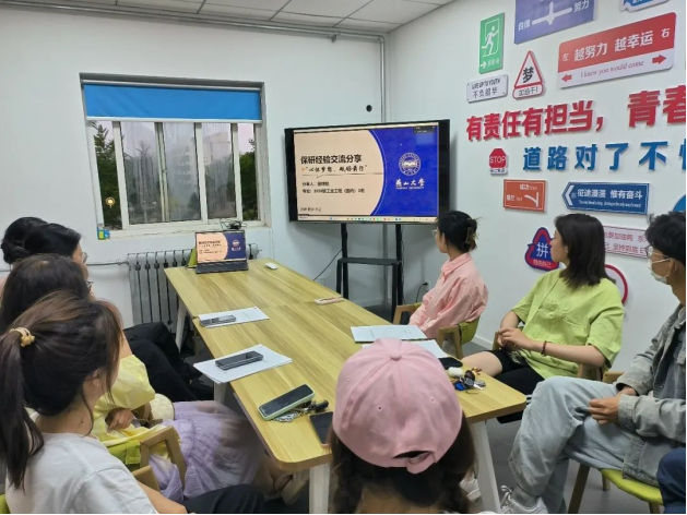 工合党支部党员田明骏学长受邀分享了他的推免经历与学习心得。党支部书记何玫娟担任活动主持人,全体入党积极分子参与,共同探讨学习之道。
