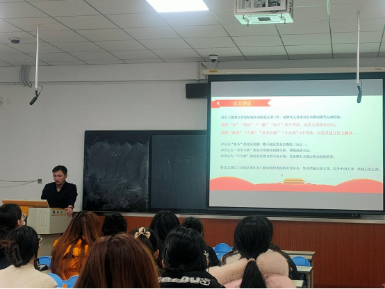 会上,支部书记吉康同志总结了过去学年本科生第八党支部的学习工作活动开展情况。支部始终坚持以习近平新时代中国特色社会主义思想为指导,把思想政治建设放在首位,持续加强理论教育与学习,鼓励并引导全体党员积极参与各项志愿服务活动。此外,支部书记代表党支部班子进行总结、检讨发言,主要查摆出支部活动创新性不足,活动形式单一及对二十大政治理论学习不够系统和深入等问题,聚焦学思想、强党性、重实践、建新功总要求,强调了党支部组织生活会的重要性和必要性。