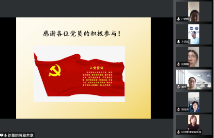 2022年6月24日,经济系党支部党员在线举行了2022年第2次党员大会。会上,支部书记徐蕾传达了近期学院党委的一系列重要指示,党员们共同学习了党史,大家还对支部“奋进新时代、献礼二十大”学习教育实践活动进行了讨论,制定了初步的活动计划。党员们怀着激动的心情,纷纷表示要认真贯彻执行上级的指示,学好党史,积极参加党组织的活动,用实际行动来迎接二十大的召开。