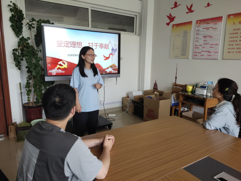 为深入学习党的二十大关于奉献精神的论述,切实贯彻落实主题教育的要求,7月8日下午15时在西五A210会议室,李宁老师以《坚定理想、甘于奉献》为主题进行党课专题培训活动。从中国共产党人百年奋斗、赤诚奉献的光辉历程到新时代共产党人的不懈追求,再到校园内默默奉献的事例,无一不是中华民族流淌着奉献精神血液的体现。李老师教育支部党员要牢记初心,成为一名担当作为、讲奉献的合格党员,在常学常新中加强理论修养、在真学真信中坚定理想信念、在学思践悟中牢记初心使命、在细照笃行中不断修炼自我、在知行合一中主动担当作为。中华民族正处在伟大复兴的关键时期,前进道路不可能一帆风顺,必定会遇到困难和问题,年轻党员同志们更要增强斗争精神,强化政治担当,担负起时代赋予的光荣使命。