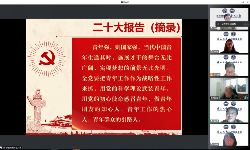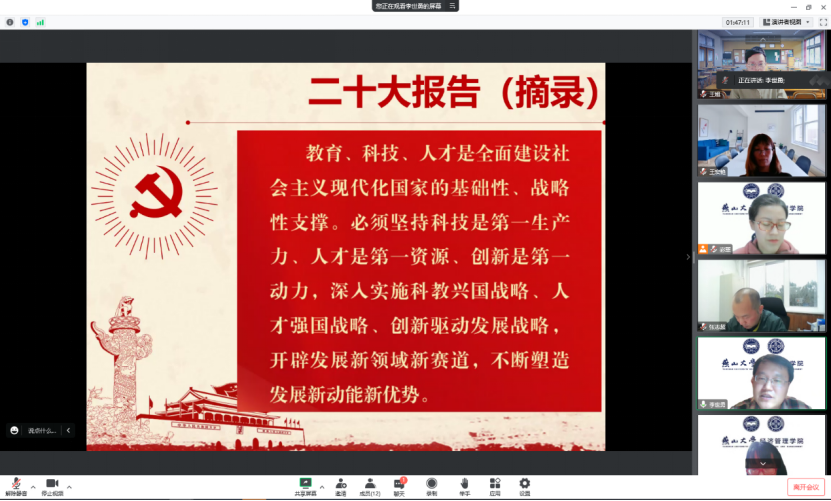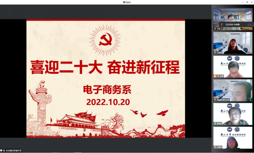 10月20日下午,电子商务系党支部以线上会议方式深入学习了党的二十大报告,支部书记李世勇主持了学习活动,电子商务系全体教师参加了学习活动,Hitomi