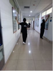 活动过程中,同学们分工明确,各司其职,有条不紊地进行清理。每名积极分子都认真仔细,一丝不苟,不放过任何一个角落。学院A区的展板、宣传板、门牌及周围环境清理得一尘不染,干净整洁。
