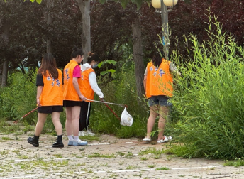 本次志愿服务活动分为两个部分,其一是对西区第五教学楼周围的环境进行清理,其二是对五教周围乱停乱放的自行车和电动车进行摆放,同时对随意停放交通工具的人员进行劝导。活动过程中,党员同志们按照之前的任务分工,各司其职,有条不紊地对五教周边环境进行清扫。虽然天气十分炎热,但同学们积极投身志愿服务的热情丝毫没有减弱,亮丽的黄色马甲在五教周边尤其醒目闪亮。