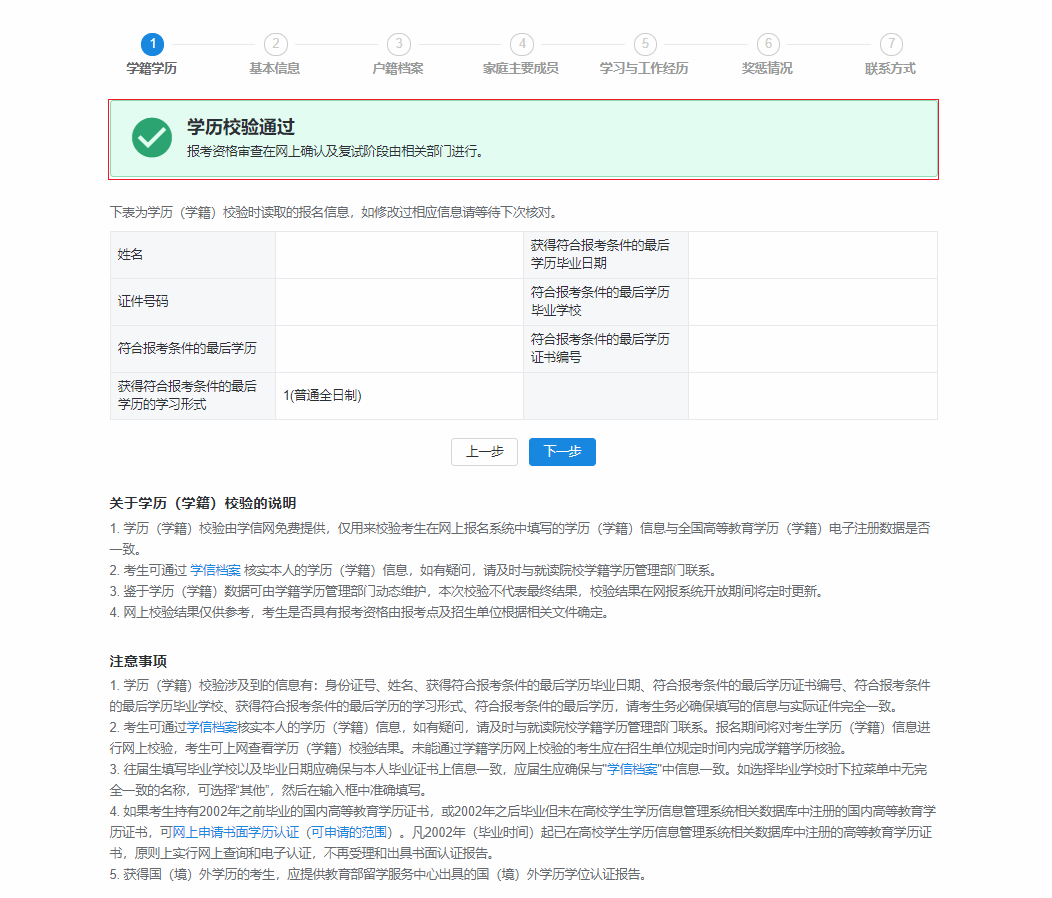 仔细查阅学历校验结果,如未通过,仔细核对是否输入错误。