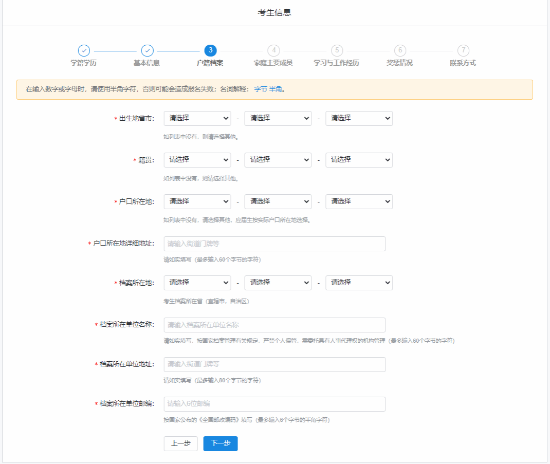 根据个人情况填写户籍信息。