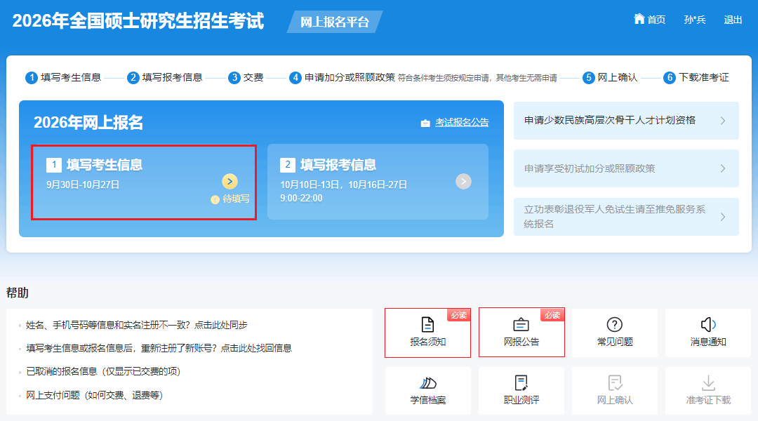 01阅读报名公告填写报考信息