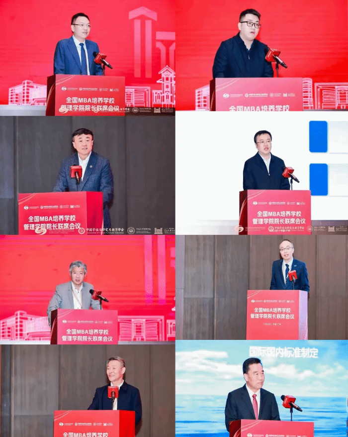 中山大学党委副书记王帆、教育部学位管理与研究生教育司培养质量处四级调研员王亮先后致辞;全国MBA教指委委员兼秘书长,清华大学党委常委、副校长杨斌总结了过去一年全国MBA教指委工作取得的关键成果,并对下一阶段的重点工作进行解读;教育部学位与研究生教育发展中心副主任亓彦伟,全国MBA教指委副主任委员、复旦大学管理学院院长陆雄文,全国MBA教指委委员、浙江大学管理学院院长谢小云,全国MBA教指委委员、哈尔滨电气集团有限公司原董事长斯泽夫,明阳集团党委书记、董事长,分别作了题为《聚焦两大任务,用好四个抓手——推动专业学位研究生教育高质量发展》《MBA教育使命与创新变革探索》《管理科学,兴国之道——服务中国式现代化建设的MBA教育创新》《从经济社会新变化看MBA教育》《“双碳”目标下产业创新变革与人才需求》的主题发言。