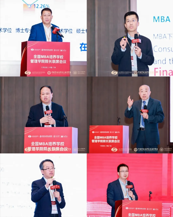 副院长徐心、江西财经大学工商管理学院院长胡海波、山东大学管理学院院长武常岐、中山大学管理学院院长张俊生分别作题为《以精细化高标准论文质量监测服务为基助力研究生教育分类发展》《拥抱AI的商学院教育:知与未知》《论文评价改革与MBA人才培养:内在逻辑与发展路径》《新格局下MBA教育的机遇与挑战》《MBA教育变革:国际经验》的主题发言,深入探讨了在面对全球化、数字化、绿色化的多重挑战下,MBA教育如何深化内涵建设、优化课程设置、强化实践导向、促进产学研融合,更好地服务于国家战略需求和社会经济发展大局。