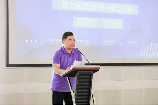 第九届津冀MBA峰会主席高东方进行汇报发言,全面总结了过去的工作成绩与经验,为新一届中国MBA津冀峰会成员提供了宝贵参考和启示。他详细叙述了峰会活动面临的机遇与挑战,并强调了创新的重要性,希望下一届峰会成员携手与共,不懈努力,共同助力津冀地区MBA的持续发展。同时,他本人也将继续关注和支持峰会的未来发展。