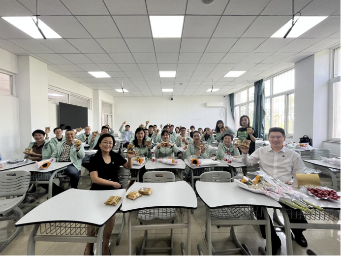 MBA教育中心谢玉梅特地为归来的学子们准备了印有“欢迎回家”字样的鲜花、燕大版的月饼和各色水果,款待大家。