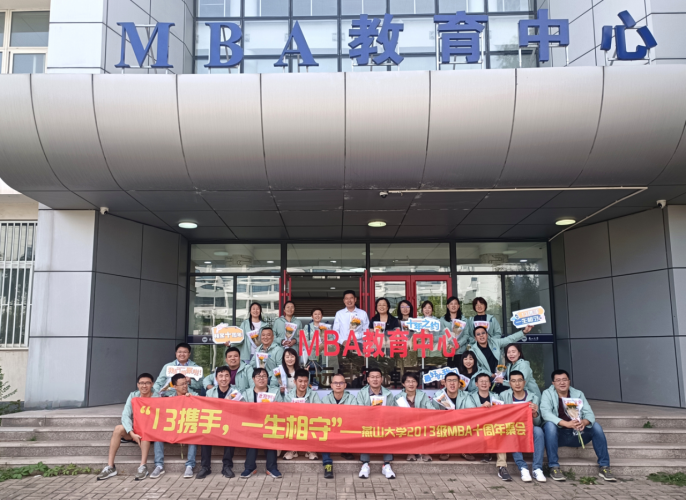 经管学院2013级MBA秋季班的同学们,迎来了入学的第十个年头, 为纪念一起走过的日子,9月23日,他们穿着统一印着“13携手,一生相守”的夹克衫,组织了“重返燕园”的纪念活动。