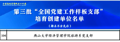 先进基层党组织”荣誉称号,入选首批国家级一流本科专业建设点,获评国家级特色专业、河北省旅游教育创新高地、河北省品牌特色专业、河北省综合改革试点专业,获批河北省“高校党建研究课题”等。